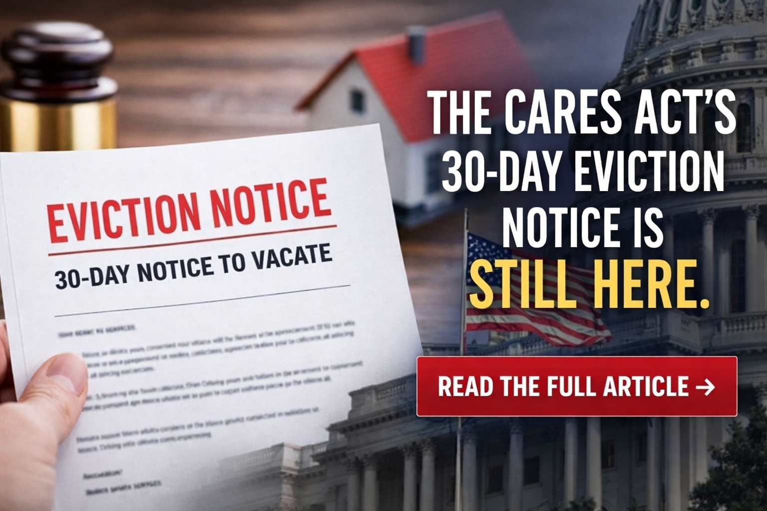 Few issues in landlord-tenant law today are as misunderstood—and politically charged—as the CARES Act’s 30-day notice to vacate requirement. What began as an emergency COVID-19 protection in 2020 has evolved into a lingering federal mandate that continues to impact eviction proceedings across the country. Now, with recent federal rollbacks and industry advocacy campaigns calling to “stop enforcement,” many landlords are left asking a simple question: Is this rule still in effect or not?